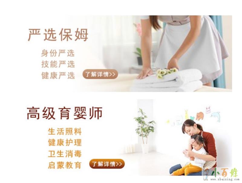 主要服务项目:月嫂、保姆、催乳师,育婴师、护工等全方位一体化上面服务。 专业月嫂 我们提供初级月嫂、中级月嫂、高级月嫂,金牌月嫂服务。确保服务质量,追求专业月嫂服务品质,用我们的细心、贴心、精心、耐心...