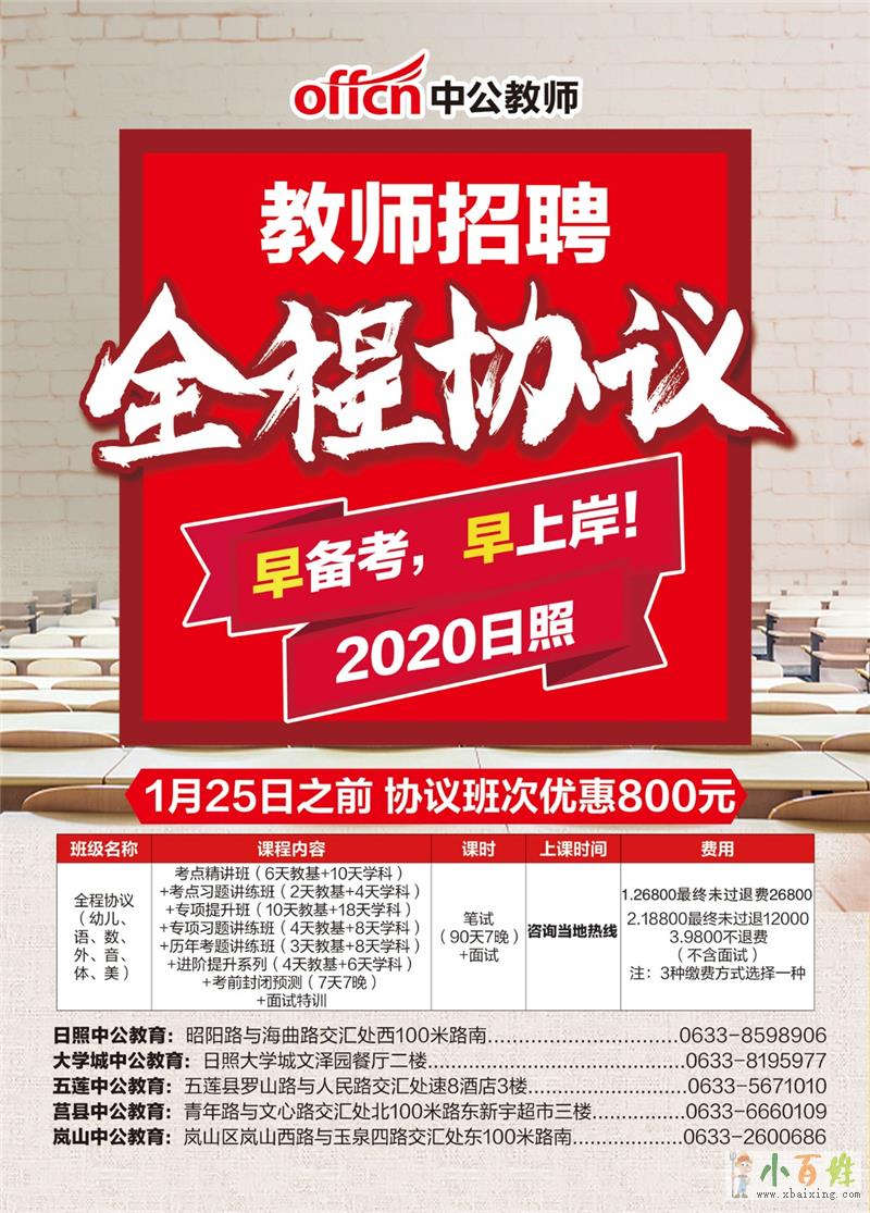 【课程】20日照教师招聘定制课程,1月25前报名优惠800元!小百姓网